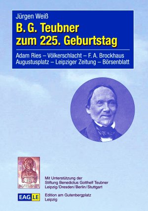 Jürgen Weiß (Leipzig): B. G. Teubner zum 225. Geburtstag. Adam Ries - Völkerschlacht F. A. Brockhaus - Augustusplatz Leipziger Zeitung - Börsenblatt Mit einem Geleitwort von Dr. h. c. H. Krämer (Schwieberdingen / von 1969 an über drei Jahrzehnte Geschäftsführer B. G. Teubner). Edition am Gutenbergplatz Leipzig. Leipzig 2009. 1. Aufl. Reihe: EAGLE-ESSAY. 127 S. 204 Abb., davon 132 in Farbe. 14,8 cm x 21,0 cm. € 18,50 / sFr 33,00. EAGLE 035. ISBN 978-3-937219-35-6 www.eagle-leipzig.de/035-weiss.htm |